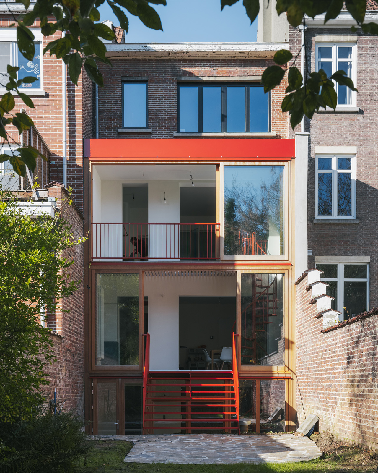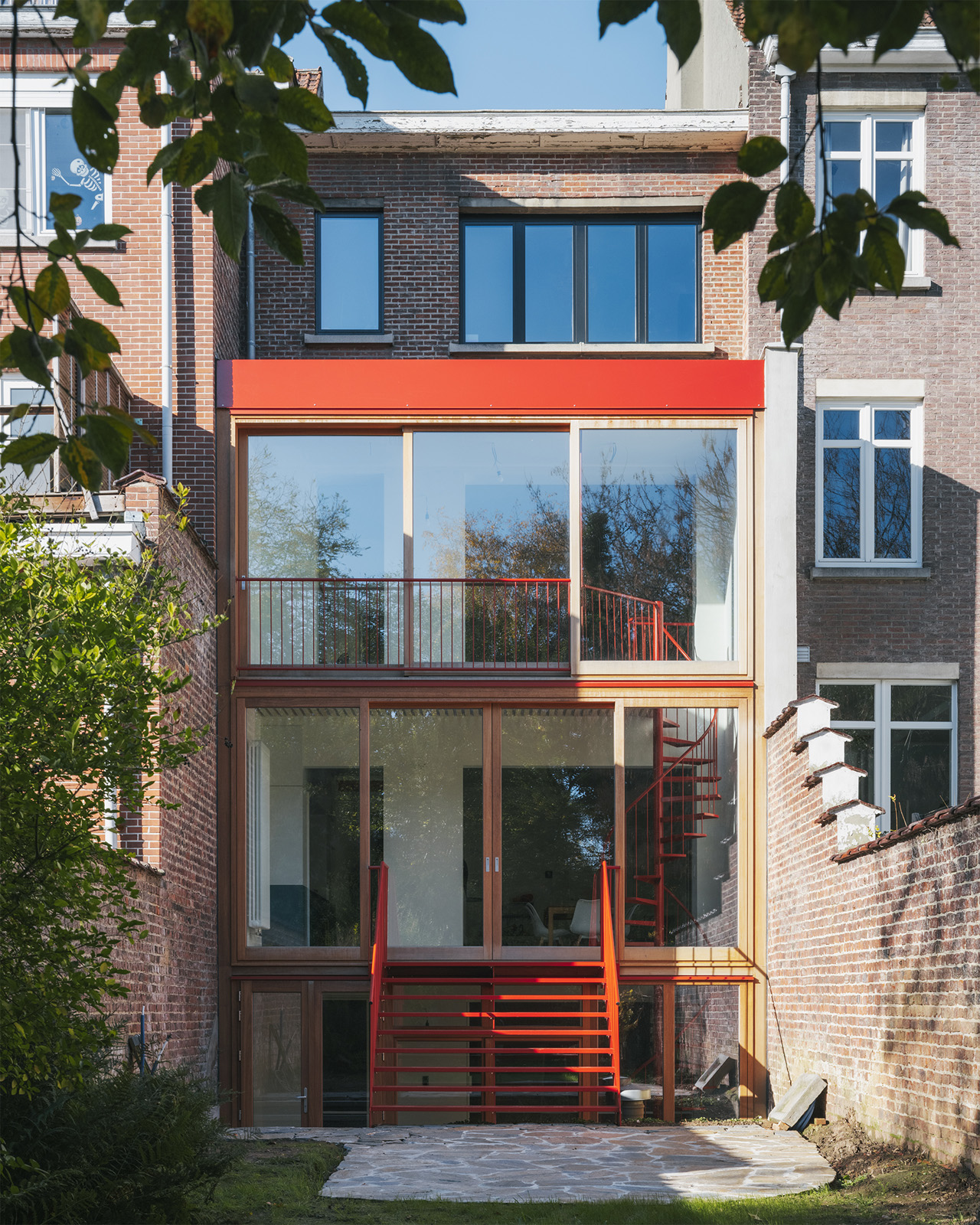 Located near the Koekelberg Basilica in Brussels, this renovation revitalizes a 1941 residence by redefining its relationship with the south-facing garden. The intervention activates the rear of the home—historically a raw, utilitarian facade—by introducing a transparent, full-height timber volume.
