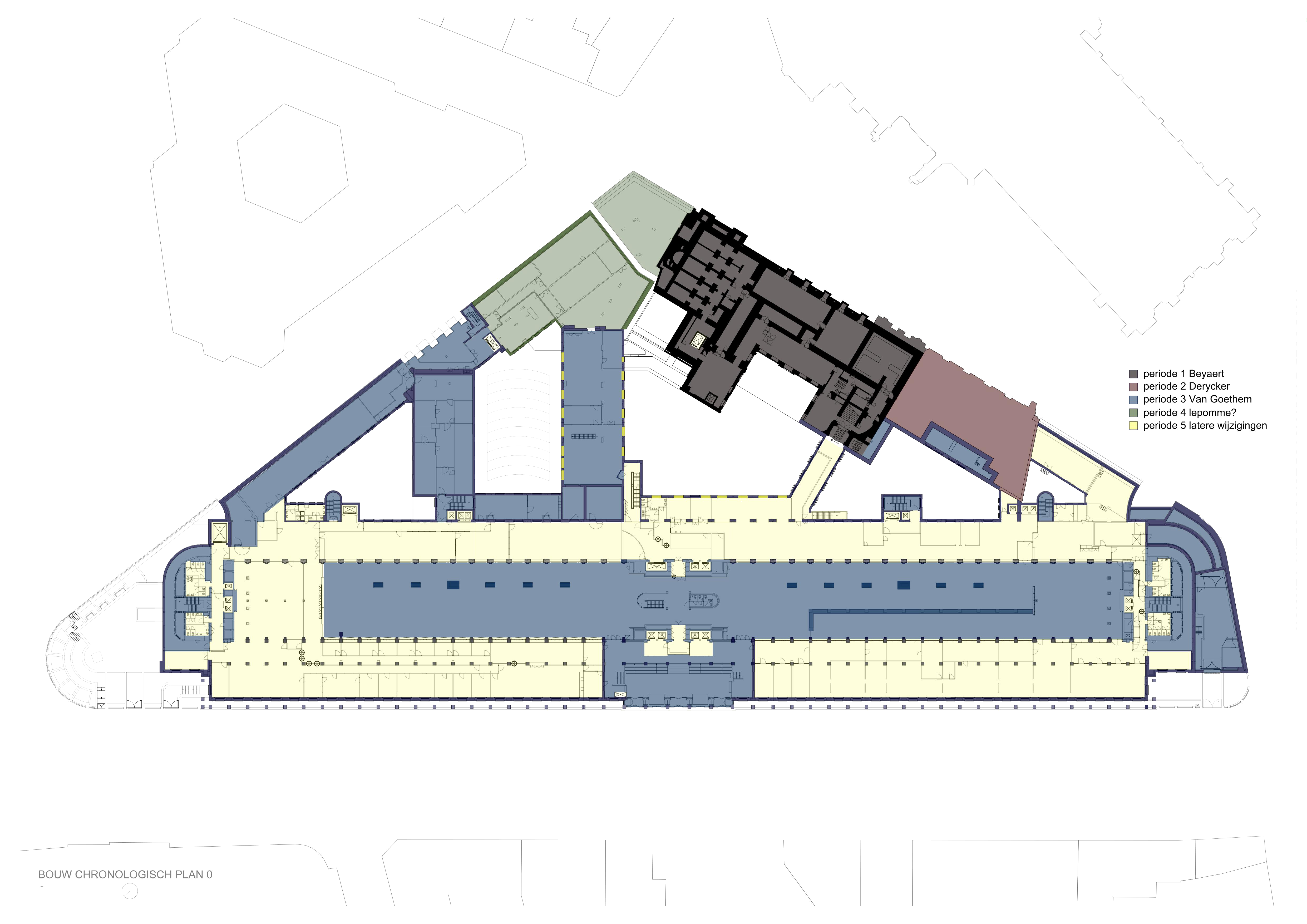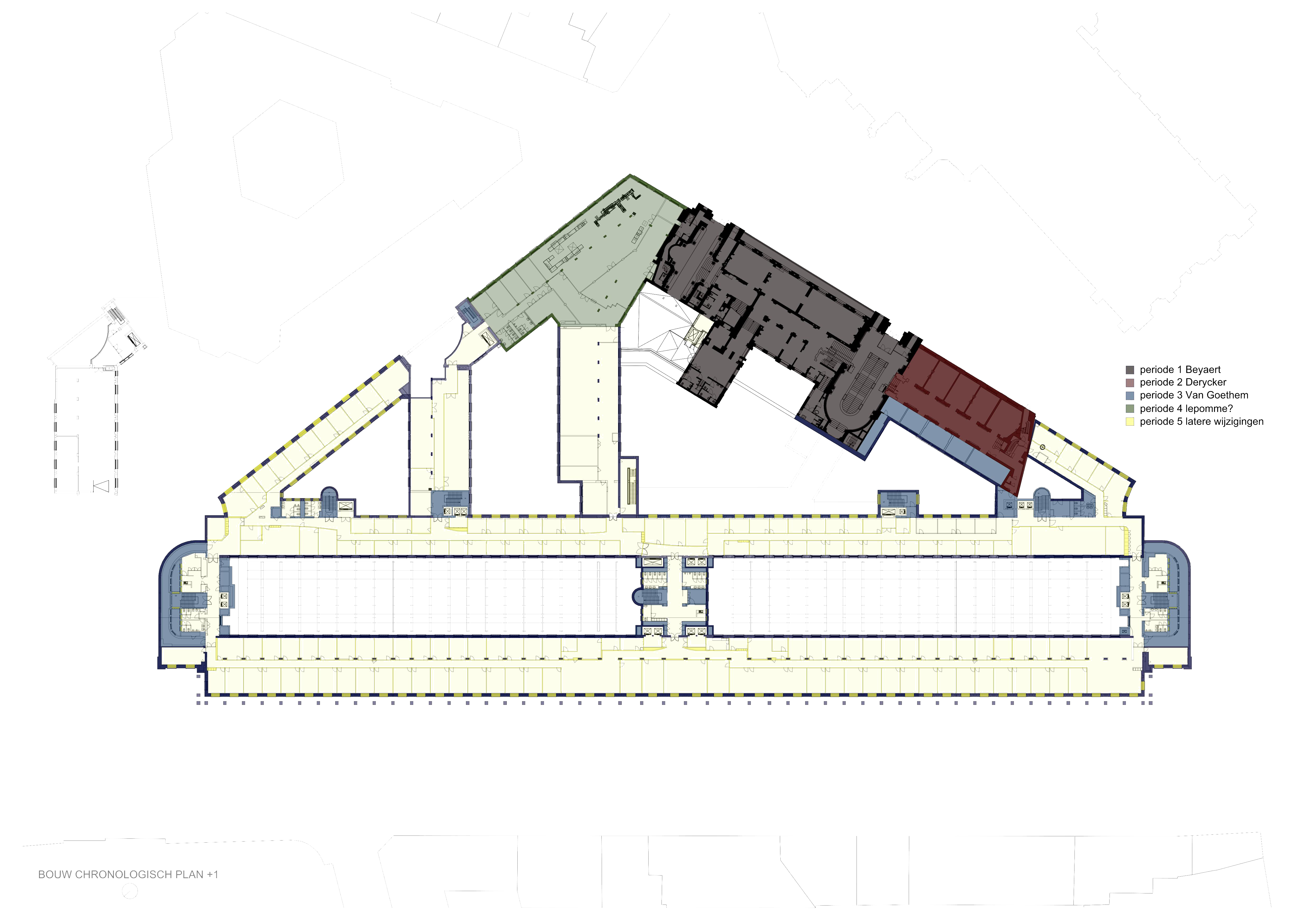 Following the reorganisation of the National Bank's offices, a historical study was drawn up as a framework for the competition to be launched for the new headquarters. The aim of the study is to unravel the rich design history of the existing building and to map out the existing situation. On the basis of this survey, the valuable elements and structures will be mapped out, as well as the pain points and potential.